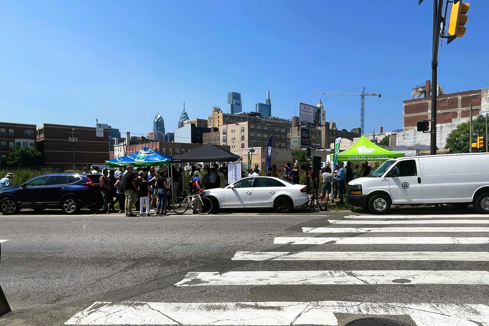 As you can likely imagine, just a few things have changed over the last nine years. After more public outreach, in the spring of 2021, adjustments to the previous plans were made – most notably, the moving of the bike lane from the median to the curbside. A fantastic summary of the project was released after these results, when the East Coast Greenway Coalition put together an awesome interactive document that lays out everything that will be impacted. The city has been continuing to gather feedback since then, but there had been nary a public word on progress until several days ago, when we saw a notice for a “Spring Garden Street Connector Community Press Conference,” which most certainly caught our eye.
