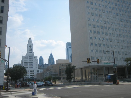 State Building in the foreground, Inquirer Building in the background