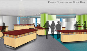 The final two phases of the project will happen throughout 2012, according to a spokesperson; that includes redesigning the entrance area and new offices on the first floor of the Bonnell building for the registrar, admissions and financial aid offices, a move that will create a “one-stop” enrollment procedure for students who now have to visit numerous buildings to enroll. An 8,000-square-foot addition will make that possible.