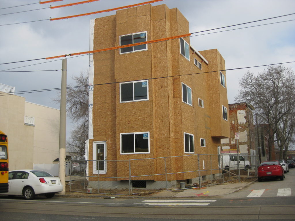 Replacing a vacant lot, this structure will eventually be home to two apartment units, which we would guess will be offered for sale as condos. Looking back a couple of years, this corner was pretty bleak.