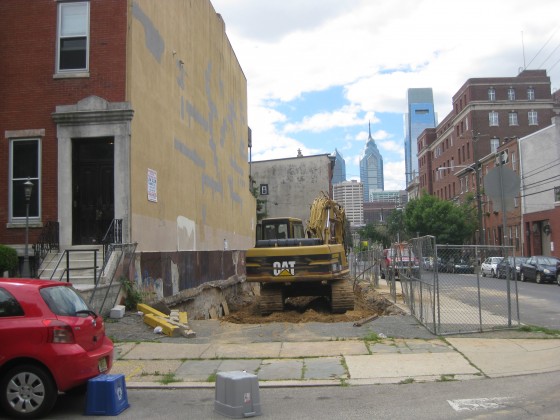 As of a couple of weeks ago, heavy machinery arrived and a hole has been dug on this enormous, 2,700 sqft lot.