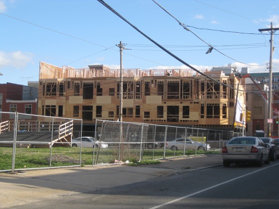 We’ve had our eye on this site since the fall, first telling you about this big and exciting project in October, and then showing you some ongoing demolition photos in December. 1424 Fairmount Ave. was most recently was a seafood warehouse, but has been completely demolished and a new structure is rising on the site.