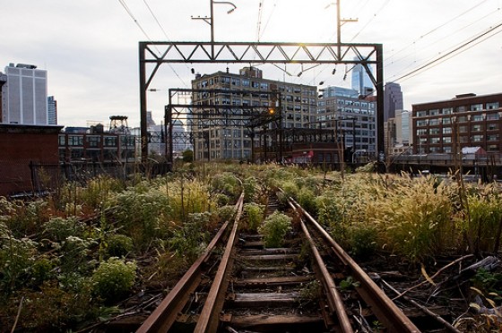 The Reading Viaduct is one of Philadelphia’s unlikely treasures, which goes unseen and unnoticed by most who live in town. For those who are uncertain what the viaduct is, it’s an elevated train track that carried trains into and out of Center City’s Reading Terminal Station for almost 100 years. It’s been out of commission since it was discontinued in 1984, when the Center City commuter tunnel was opened and the Terminal was closed to trains. The viaduct was built back in the 1890s and runs from Vine St. to Fairmount St., though it originally went all the way to Arch St. While the remaining viaduct has now become quite overgrown with grass and unruly trees, there is a ton of potential for development as it does provide pretty awesome views of the city and surrounding neighborhoods.