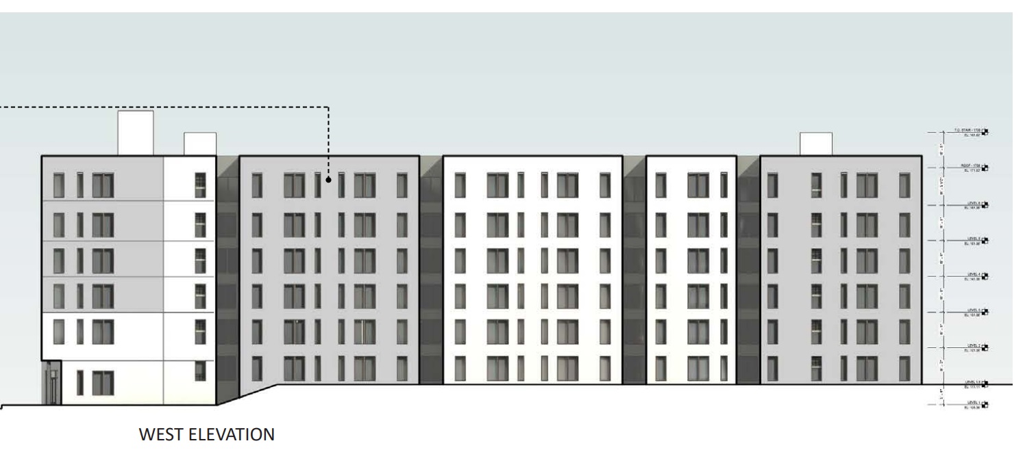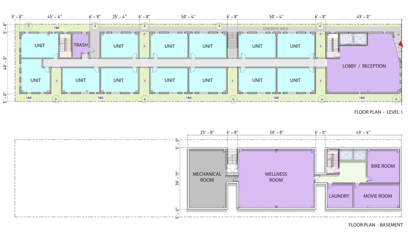 In what is actually a follow-up to a smaller project that was approved back in 2020, 90 units of affordable senior housing are being proposed for this long narrow lot. The plans call for 90 studio and one-bedroom units across six floors, with a roof deck and basement amenities as well. This building utilizes a long, single corridor flanked by the small units, with its massing broken up by light wells, also bringing air circulation and some brightness to more of the units. This would be a purely residential building, with no on-site commercial space or parking included for this RSA-3 zoned property.