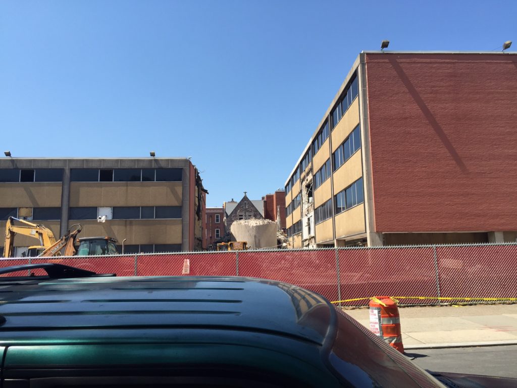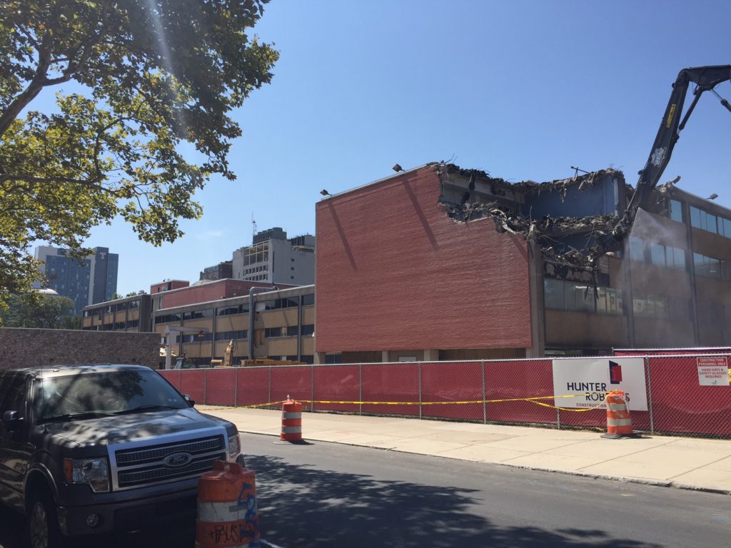 Earlier this week we were in the mood for a crepe, and we decided that a visit was in order to the Creperie at Temple food truck on the 1200 block of Norris Street. On this lunch-seeking mission, we were unaware of two things. First, classes have started at Temple and the campus is now crawling with undergrads. Not such a big deal, but it made for a longer than expected line at the food truck. Perhaps more relevant for a real estate blog, we also noticed that Barton Hall is getting torn down.