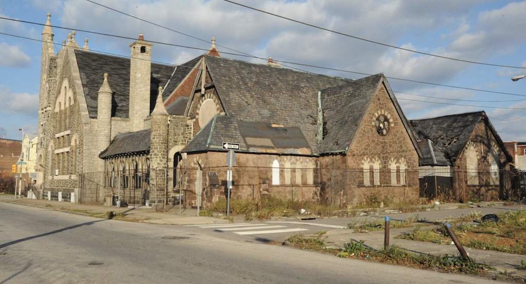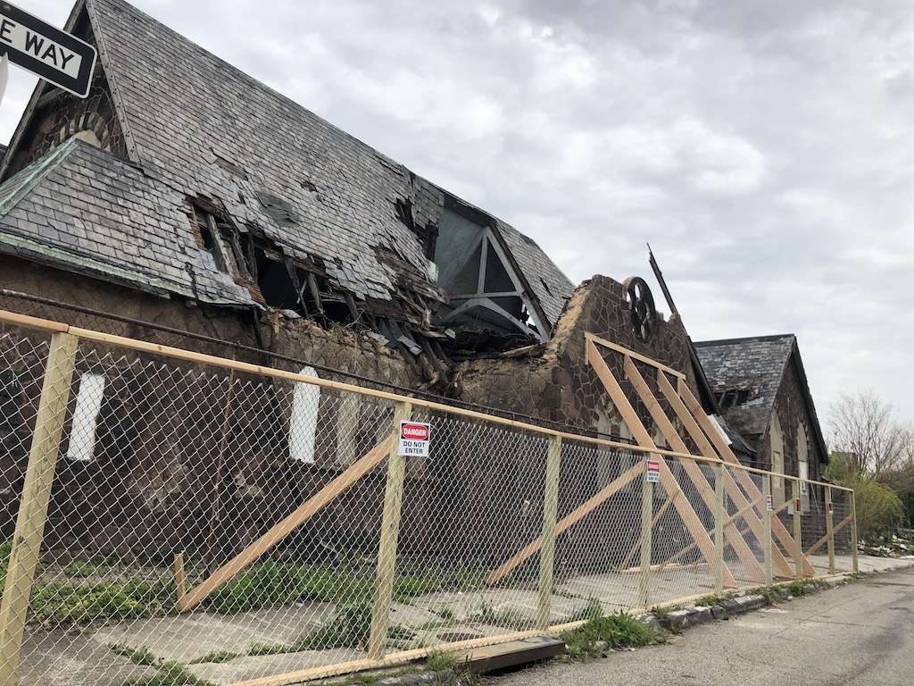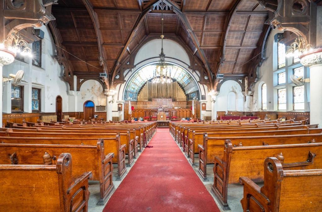 The building was added to the National Historic Register in 2013 “for its embodiment of the distinctive characteristics of exterior materials, massing, plan, and physical relationship to the street typical of Philadelphia churches of its period; and as a notable example of the Richardsonian Romanesque style, a national design idiom.” Remarkably, the exterior of the northern building looks almost identical to the way it looked in the late 1800s, even as almost every surrounding building has fallen into disrepair and been demolished during that time. The interior has also held up surprisingly well, with stained glass windows, pews, and the elaborate wood carved ceiling all seemingly in good condition despite their age.