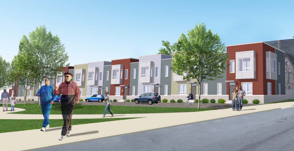 The ten homes will appear behind the fence you see pictured above. Between the homes and 16th Street, a new park is planned. According to Philly.com, we'll be seeing 3 bedroom, 2.5 bathroom homes with basements. KSK Architects did the design work, and we poached this rendering from the Community Ventures website. Prices start at $140K per home.