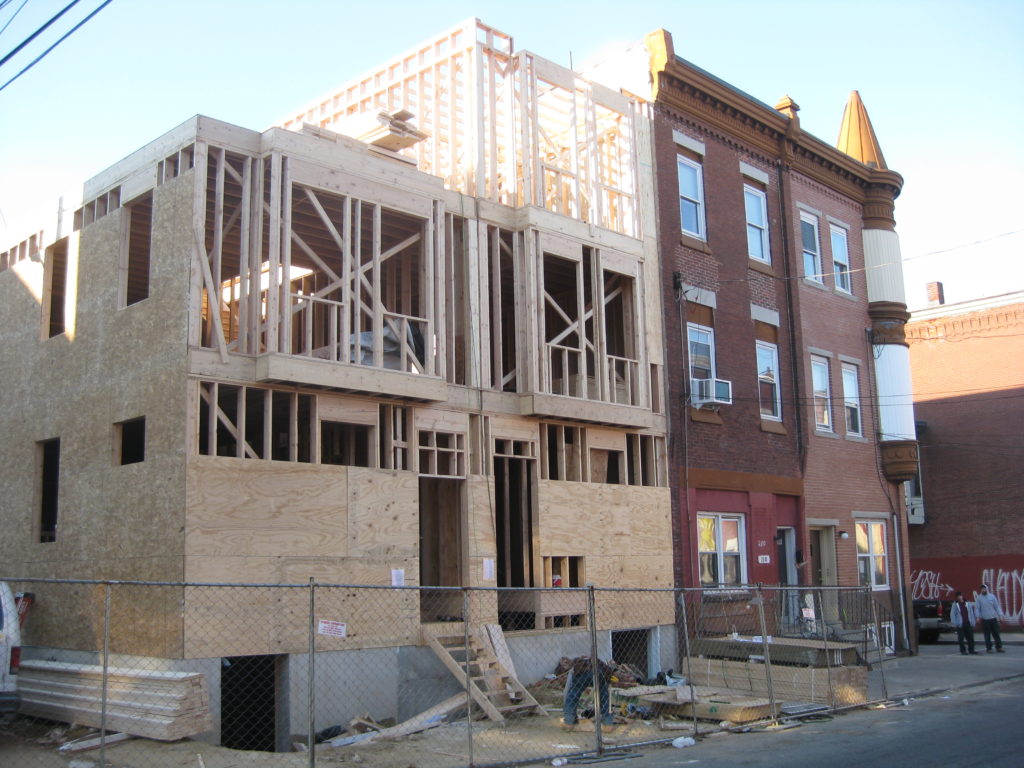 Back in September, however, BenTon Student Housing purchased the lots, probably from another developer. BenTon, as the name suggests, deals in rentals to students that go to Temple. Looking at their website, they seem to mostly do rentals of rehabbed homes, so it’s a little surprising to see this sort of construction effort on their part.