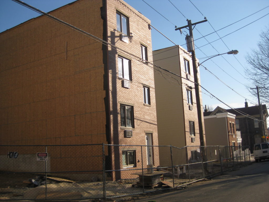 1413 Dev LLC, however, has picked off two of the privately owned lots, 1413 and 1417, and is in the process of constructing two triplexes, which “fortunately” have a City lot located right between the two. On the plus side, tenants will have a side yard, probably in perpetuity. On the negative side, who wants to live next to a vacant, poorly maintained lot?