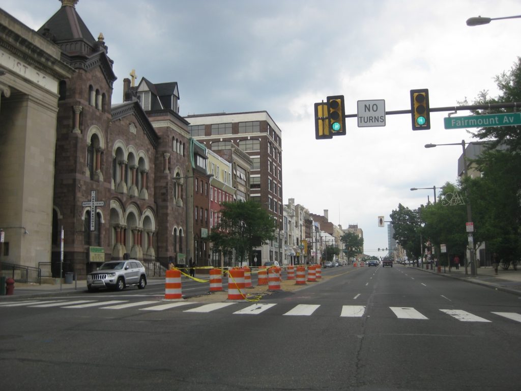 A couple of readers have asked us in recent weeks whether we know anything about the construction taking place in the middle of North Broad Street. While word of this sort of work might make you expect a major and persistent traffic snarl, the activity is actually pretty compact and doesn't seem to be impacting cars traveling hither and yon. To the naked eye, it appears as though the City is constructing little medians on North Broad Street, starting in Francisville and running up past Temple.