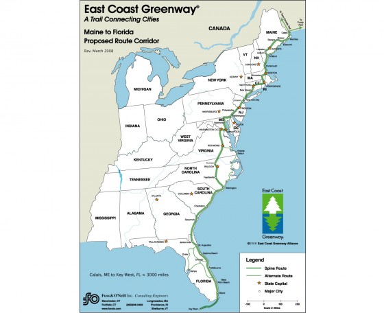 Imagine a bike trail that stretches along the East Coast through cities, along rivers and through suburban towns like a cyclists’ I-95 and you will find yourself among the musings of the advocates and engineers of the East Coast Greenway. This project’s goal is to connect Canada to Key West, bike style.