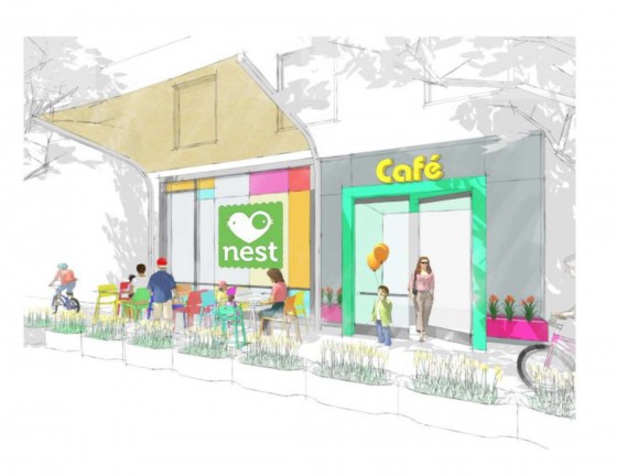 The space for NEST itself will be impressive, with high ceilings throughout and 3 full floors of smartly designed play areas. The main floor at street level will be a mostly open floor plan containing a registration desk to welcome members and visitors, a large stroller-friendly coat room, a small cafe to purchase food and drink, a lounge for parents to congregate and socialize, and a bright retail space that shouldn’t have too much competition from the its forebears. Also tucked away on this floor, a small salon for kids’ cuts and a photo studio, making this a one-stop shop for parents seeking something more hip than a Sears portrait.
