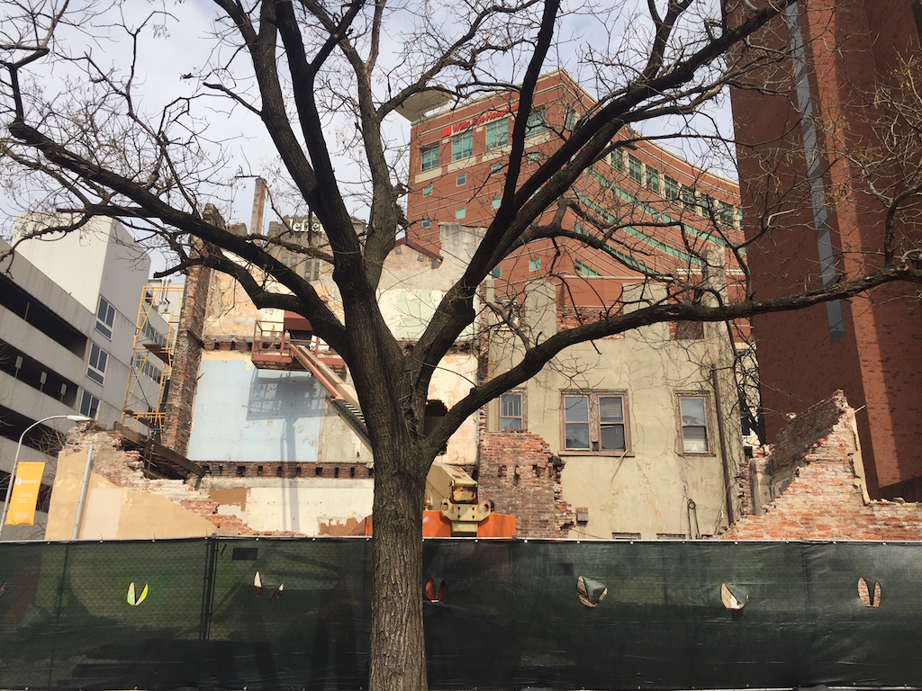 We theorized that Wills Eye owned these properties because they had a plan to eventually build a new facility on this site, with a footprint that would likely travel up 9th Street. At the end of last year, we learned that the hospital had pulled demolition permits for the two buildings, and we assumed we’d soon hear about a shiny new building planned for this location. Alas, that wasn’t the case. Instead, a representative from the hospital indicated that the buildings were getting torn down and that there’s no imminent plan for something new at the site. The demolition plan is apparently in the “interest of public safety.” Go figure, when you don’t do anything with an old building for twenty years, it starts to fall apart.