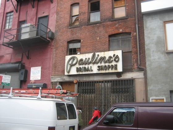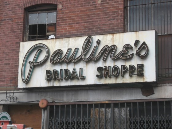 Yes, this block was the home of Pauline’s Bridal Shoppe, once upon a time. How long ago, you may ask? When did it go out of business, you may wonder? What’s the address, you may inquire? Unfortunately, we have no answers. We can’t find anything about the business, its history, the owners of the property, or the property itself. We can’t even identify its address from looking at the OPA.