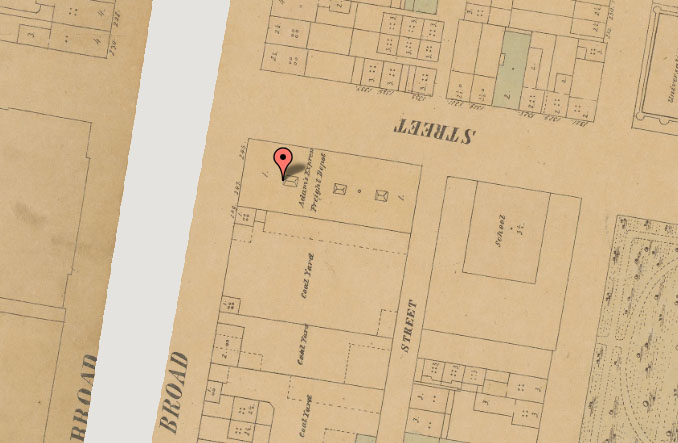 The Southeast corner of Broad and Locust would appear as stable a corner as any on the Avenue of the Arts. Here stands the massive DoubleTree Hotel. However, the history of the location listed as 237 S. Broad St. is distinguished by constant change, dating back more than a century-and-a-half. Indeed, the image shown here below, borrowed from Hexamer & Locher’s 1858 Philadelphia Atlas, indicates that Adam’s Express Freight Depot occupied the space where DoubleTree’s grand atrium now stands.