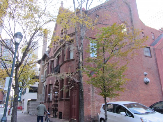 1319 Locust St. stands out on the north side of its block for its deep red brick edifice and its wrought iron railings. These features hint at the building’s late 19th century construction.  However, this would not be the first known structure to stand on the spot.  According to the Bryn Mawr College website, that honor belongs to the Universalist Church of the Messiah, which was built in 1850.  Its location is shown here below in an image taken from Hexamer & Locher’s 1858 Philadelphia Atlas.