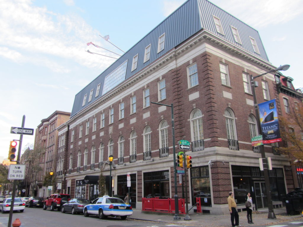 The intersection of 13th & Locust has long been a thriving and commercially dense area. However, our interest is with a corner at which very little of great importance seemed to take place prior to the 20th century. The image here below, taken from G.W. Bromley’s 1895 Philadelphia Atlas, shows a southeast corner without an occupant notable enough to warrant identification on the map.