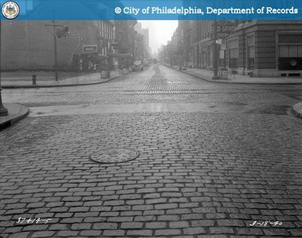 The relatively modest building shown above would soon be dramatically upgraded with the construction of a new home for the Philadelphia Real Estate Board. Philadelphia Architects and Buildings tells that this first noteworthy inhabitant of the corner was probably inserted around 1922. The image below, taken from the same site, is dated to the mid-1920s and shows the far larger and more modern structure now in place.