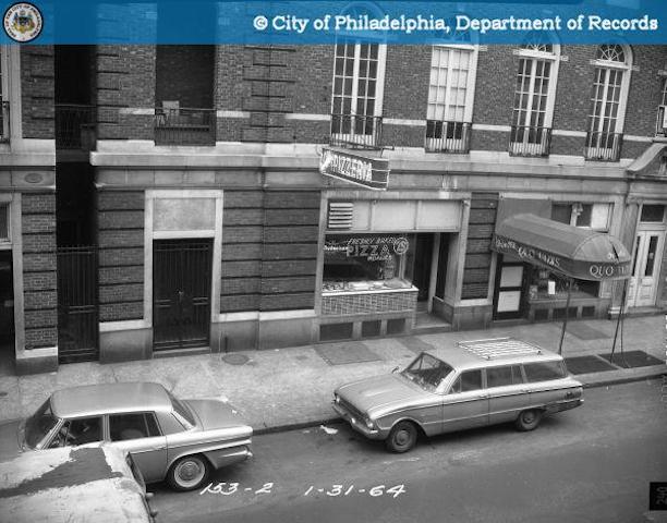 Any number of occupants is likely to have passed through the first floor of 1234 Locust St. over the next two decades. The next available image, a Department of Records photo from 1964, shows a Pizzeria and a next-door neighbor whose identity we couldn’t confirm.