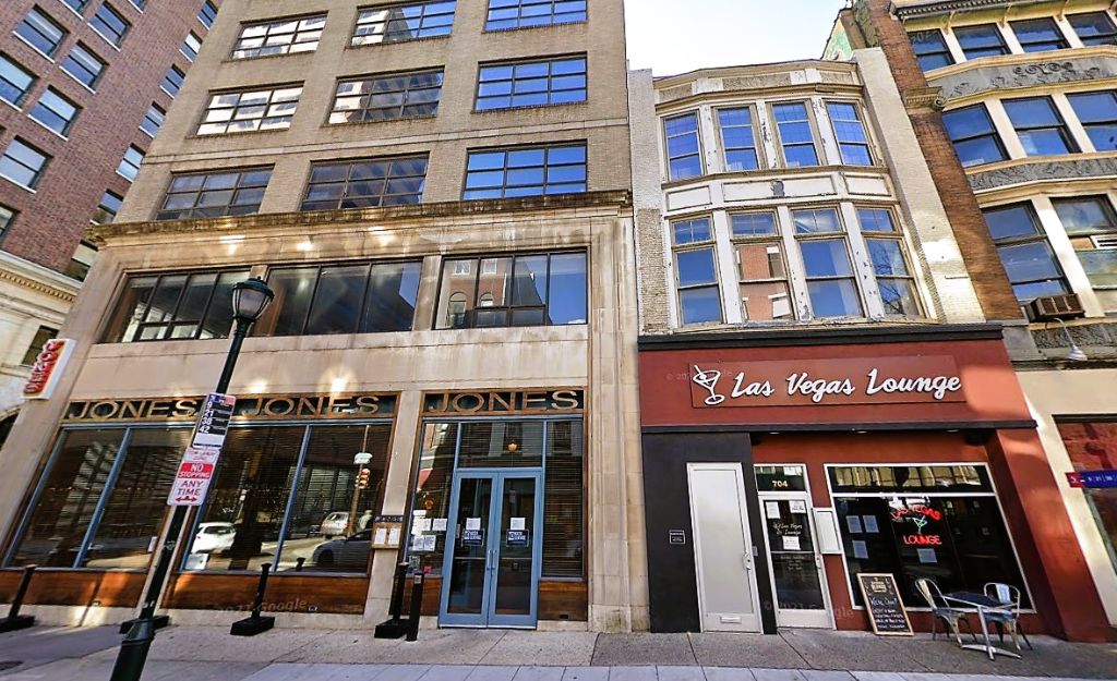 Every once in a while, a project comes our way that both catches our eye and catches us off guard. When we saw a new zoning permit for the properties at 700-04 Chestnut St., the eye-catching part was easy. After doing a little bit of research on this property, we can now say we are officially in “what is going on here?” mode. For those of you familiar with the area, Stephen Starr‘s restaurant, the now-defunct Jones, used to take up the ground floor of 700-02 Chestnut, with Las Vegas Lounge next door in 704. This area is also a part of the Chestnut Street East Commercial Historic District, which became designated late last year. This ensures that buildings won’t be needlessly torn down or have a facade slapped up that doesn’t relate to the character of the area. So color us surprised when we saw a zoning permit that called for the demolition of 704 and the partial demolition of 700-02. Let’s check out how things are today.