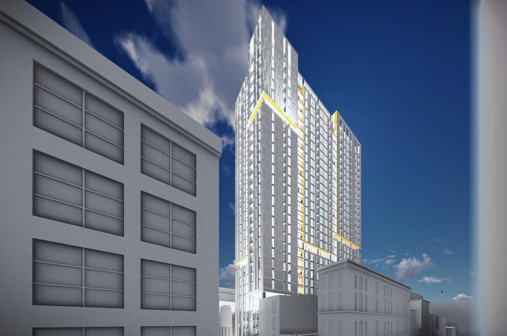 This isn’t even the biggest project proposed for this block. Just across the street, we told you about a proposal for 709 Chestnut back in 2018, which called for a 27-story building to go up on a surface parking lot. This design from Erdy McHenry Architecture would bring 278 dwelling units and a modern look to this historic block. Zoning permits were issued in late 2021, so hopefully we’ll see things move on this project soon. These projects would clearly make a massive different to this stretch of east Chestnut, which at times can feel a little sleepy once you get east of 10th Street or so. Hopefully whatever we see rise on these sites will do a good job highlighting the gorgeous architecture that exists today.