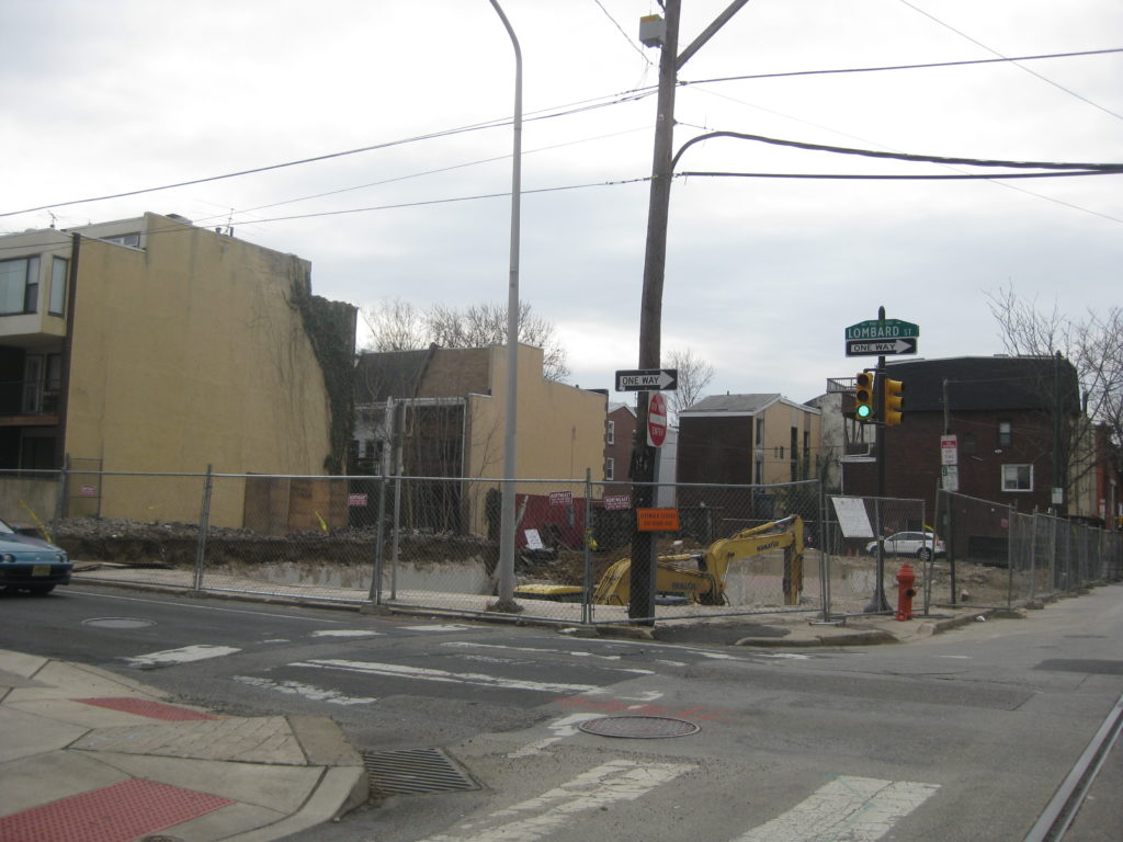About a year ago, we first brought you news that developer Virgil Procaccino would be purchasing the Pain Center, at 12th and Lombard Sts., and replacing it with six new homes. Over the past couple of months, demolition has taken place at the site and the building is no more. While the name of the now-destroyed building provided us with some laughs over the years, we can’t say we’ll miss the brutalist structure that held down this corner for over four decades.