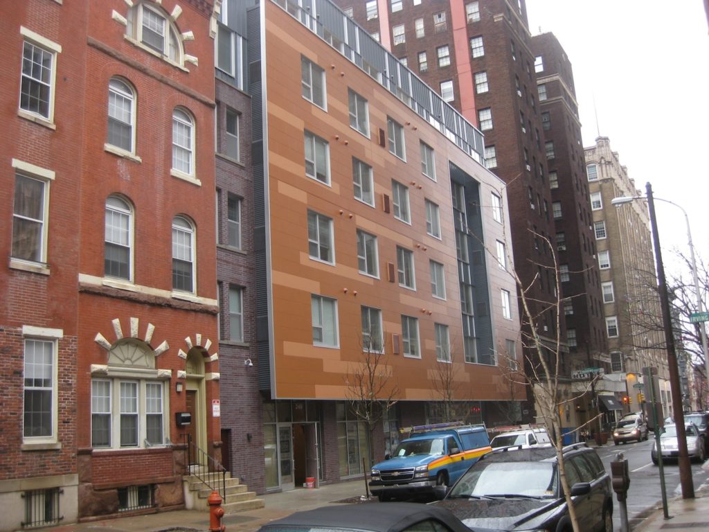 At 249-57 S. 13th St. over the past couple of years, an old PPA garage has been demolished and the John C. Anderson Apartments have risen. This project, which we last checked on a little less than a year ago when exterior work was still ongoing, is marketed toward low-income LGBT seniors. Back in February, a ribbon cutting ceremony marked the official completion of the structure.
