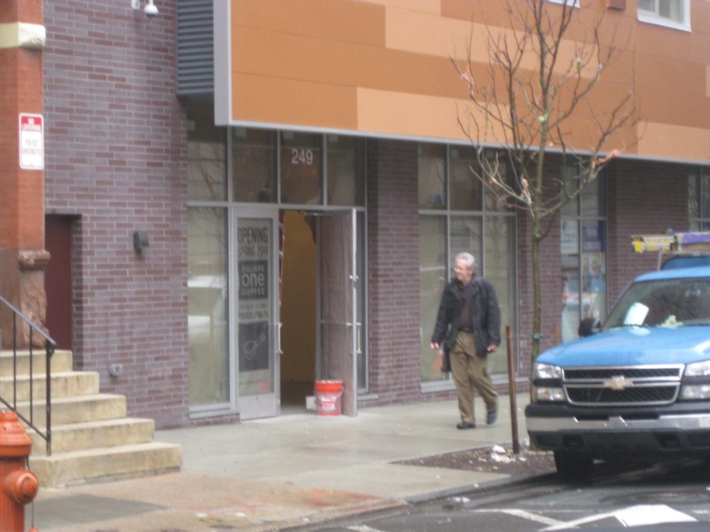 As you can see in the blurry picture above, a retail space on the first floor will soon be filled by Square One Coffee, out of Lancaster. Combined with the building it will inhabit, this will mark a huge upgrade over what was here before. We are looking forward to sampling their goods when they open in the coming weeks.