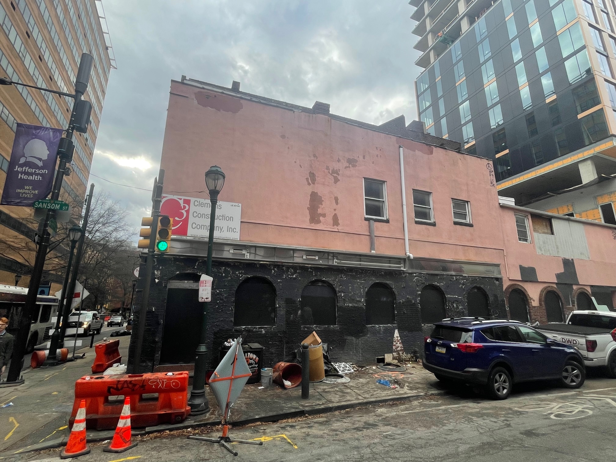 Just down 11th St., the former Wendy’s at 11th & Walnut is gone, along with its western neighbors. When we were here last summer, demo was still on-going to make way for an the expanded design of the 198-unit tower. While things seemed to be full-steam ahead for these plans from JKRP Architects, the current state of the job site makes us a bit uneasy whether we’ll see movement here in the near term (cue flashbacks to another now-paused construction site).