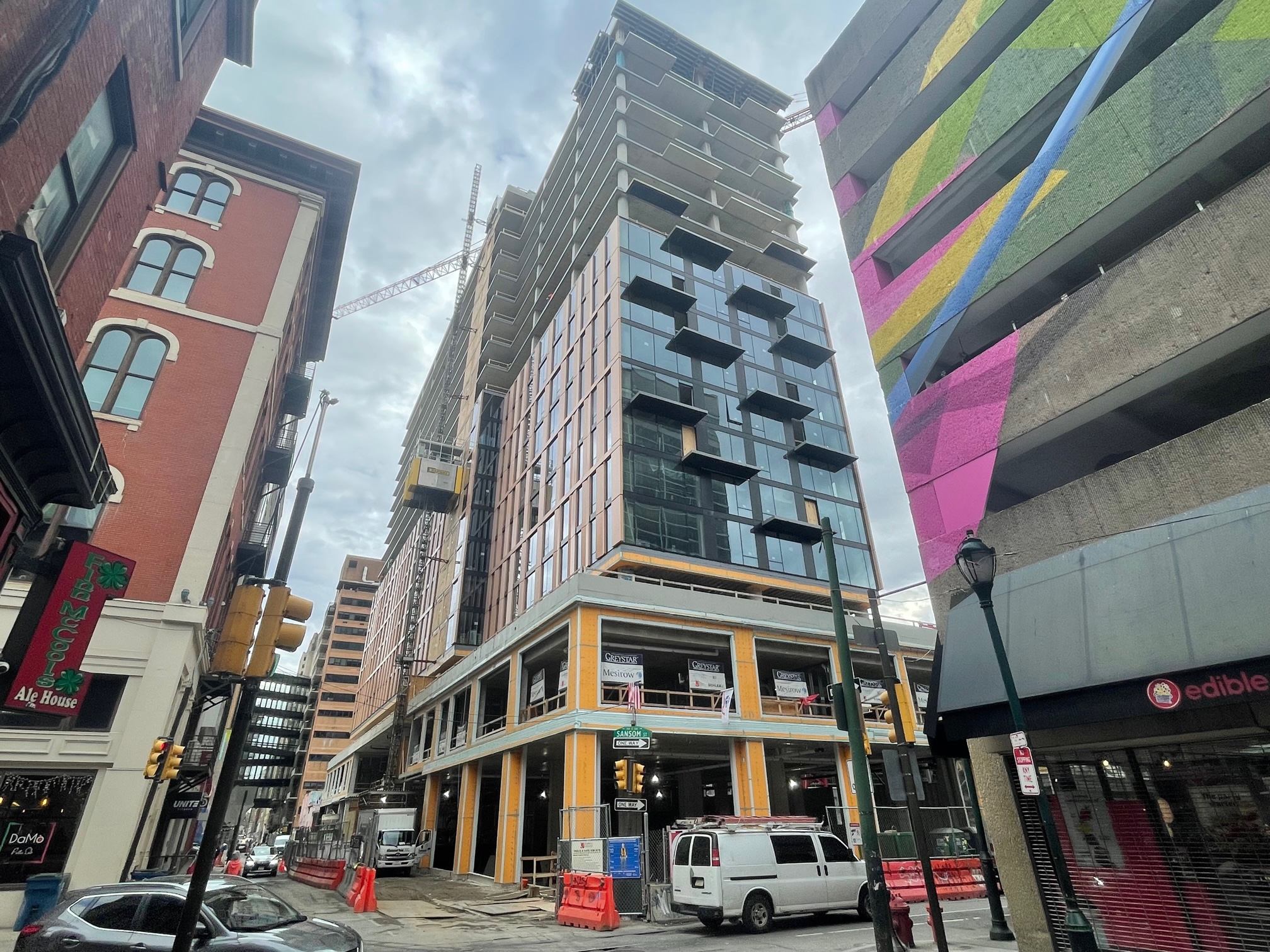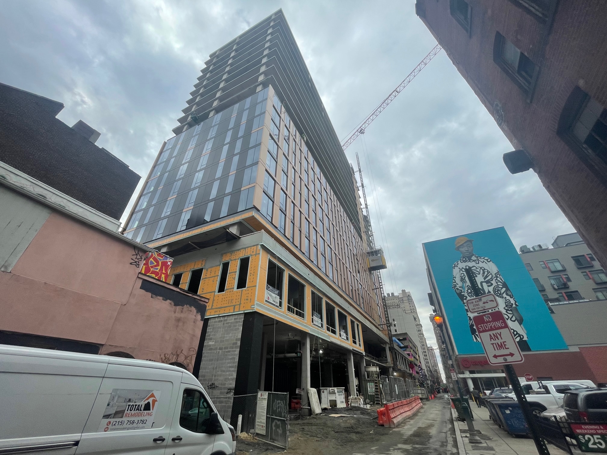 123 S. 12th St., despite its Sesame Street-sounding address, is growing up rapidly after we last stopped over back in August. But me oh my, the scene sure is different here just five months later. Formerly a parking garage, this project (now called Jessup House, thanks to the sliver of Jessup St. on the site’s eastern edge) from global developers Greystar and designed by STUDIOS Architecture and BLTa will rise 20 stories, adding to the skyline in the rapidly expanding Washington Square West/Market East neighborhood.