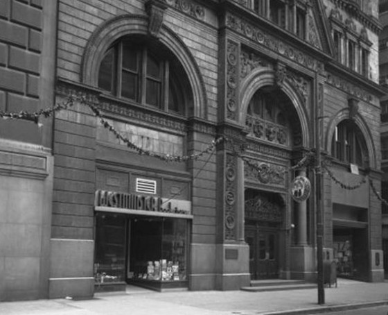 View of the building in 1956, with some active retail
