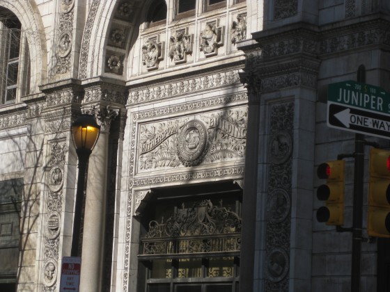 The building was built in 1896, and was one of the tallest buildings in the city at the time of its construction. Designed by Joseph M. Huston, the building was commissioned by the Presbyterian Church and held numerous offices for the church until its sale in 1973. Though the building has ornate details all over the place, some of the more interesting details were removed for safe keeping decades ago. Originally, ten statues of figures from the Bible, carved by Samuel Murray, adorned the building on the eighth floor level. Additionally, six statues of figures from the Presbyterian movement, carved by Alexander Stirling Calder, previously stood above the main doors on Juniper St.