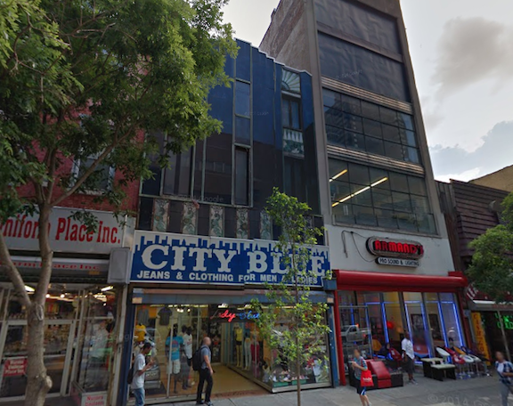 It's hard to tell exactly what was going on from the grany Google Street View photo, but it looks like the previous facade was granite and it featured a collection of Deco details. Now the brick underneath is exposed, and all evidence of the old facade is gone but for the firring strips that likely held it up in the first place. So what happened?