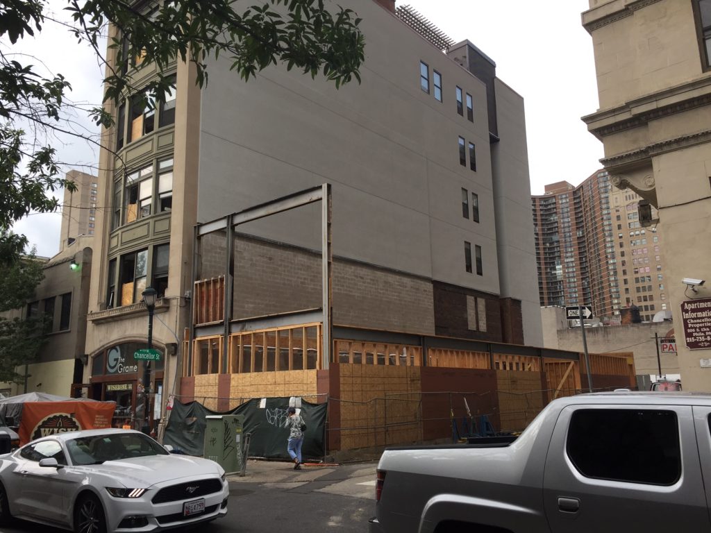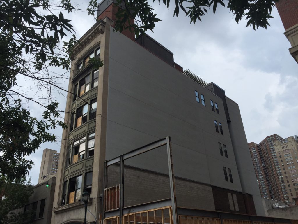 On the one hand, we were excited to see what Senat would do with a French bistro at this location. On the other hand, we were a little sad that this unique building would be no more. But alas, the building came down in late 2014 and construction began for the new two-story restaurant. Last September though, a 3-alarm fire broke out at the construction site, ruining most of the new building and severely damaging the Gramercy building next door. Since the fire, the construction site has seemingly sat dormant, at least as far as we could tell. But when we passed by the other day, it looked like some framing had occurred at the site somewhat recently.