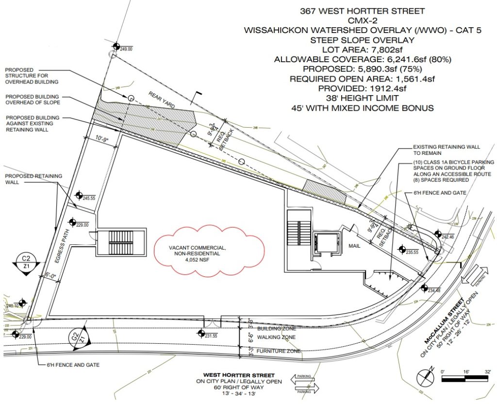 One of the perks of our real estate journeys is when we get to check out a gorgeous part of the city at a gorgeous time of year. The leafy canopy of Mt. Airy starting to show its verdant buds is about as high up on that list as you can get. This winding neighborhood almost feels as if someone dropped a bit of Bryn Mawr within the city limits. Given that, it came as no surprise to us that a proposal for a “new high-rise” at a former one-story market was met with some pushback from the near neighbors. The Joa Mart stood at 367 W. Hortter St. in the past, offering fresh produce and other options to the neighborhood.
