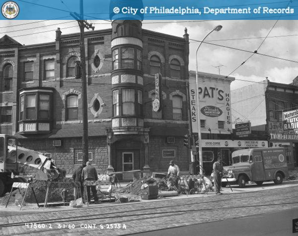 It’s only been a few weeks since we last checked in on some of the new construction around 44th and Lancaster Avenue and we already have a reason to return. Today we will draw your attention to 4402 and 4404 Lancaster Ave., two distinct properties that were once used together. Back in 1960, the three story building at 4402 and the one-story building at 4404 were home to Pat’s Steaks (not to be confused with Pat’s King of Steaks). You can see in the image below, the upper floors at 4402 Lancaster Ave. were covered with plywood, likely used for storage for the hoagie shop.