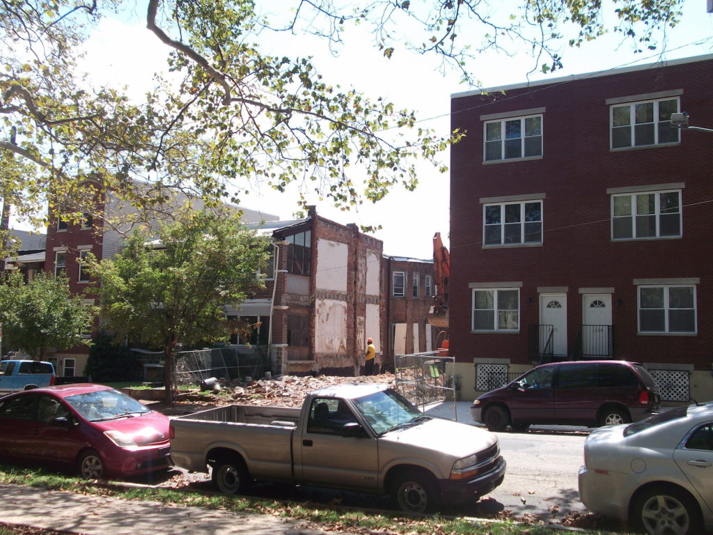 It's hard to know the condition of the buildings that were torn down here. It's possible that they were in rough shape and it warranted a tear down but we're thinking that it must be more profitable in the long run to demolish the unrenovated old buildings and build the larger structures for the local student population. We'd guess that the owner will eventually do the same with the rest of the properties he owns on the block that aren't already rebuilt. Sadly, it seems that the architectural character on this block will continue to diminish in years to come.
