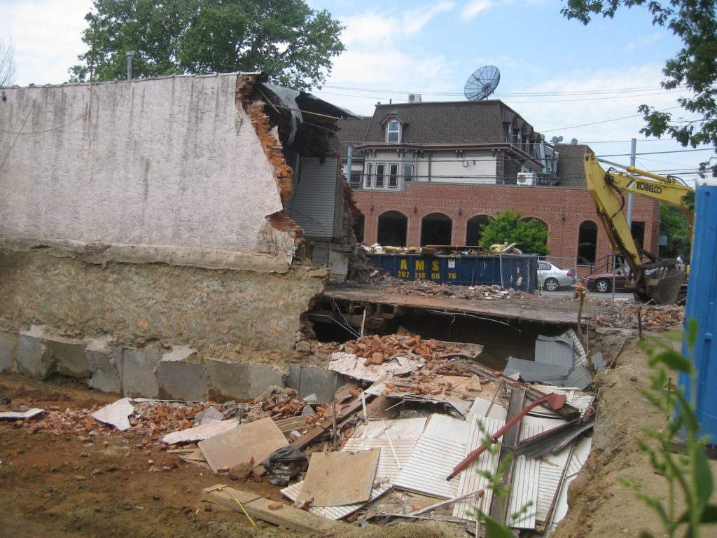 Over the weekend, the fate of the deli was determined. According to City Paper, construction next door caused the side wall to collapse, and L&I is now in the process of demolishing the building. The sight of the partially demolished building caught our eye when we passed by yesterday.