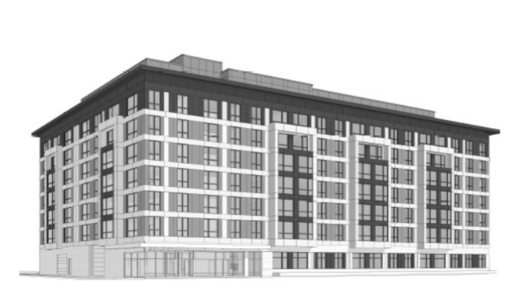 Per our last check-in, plans originally called for a nine-story building featuring 160 apartment units over ground floor retail. We had a rendering at the time that showed what looked to be a brick base with white panels on the upper floors, but it certainly seems like plans have been adjusted. We have a new rendering for this building which was designed by JKRP Architects per the zoning documents, but the progress is such at the site that the rendering is barely necessary at this point. You can see how the plans have shifted for this project, now called Olympic Tower Apartments.