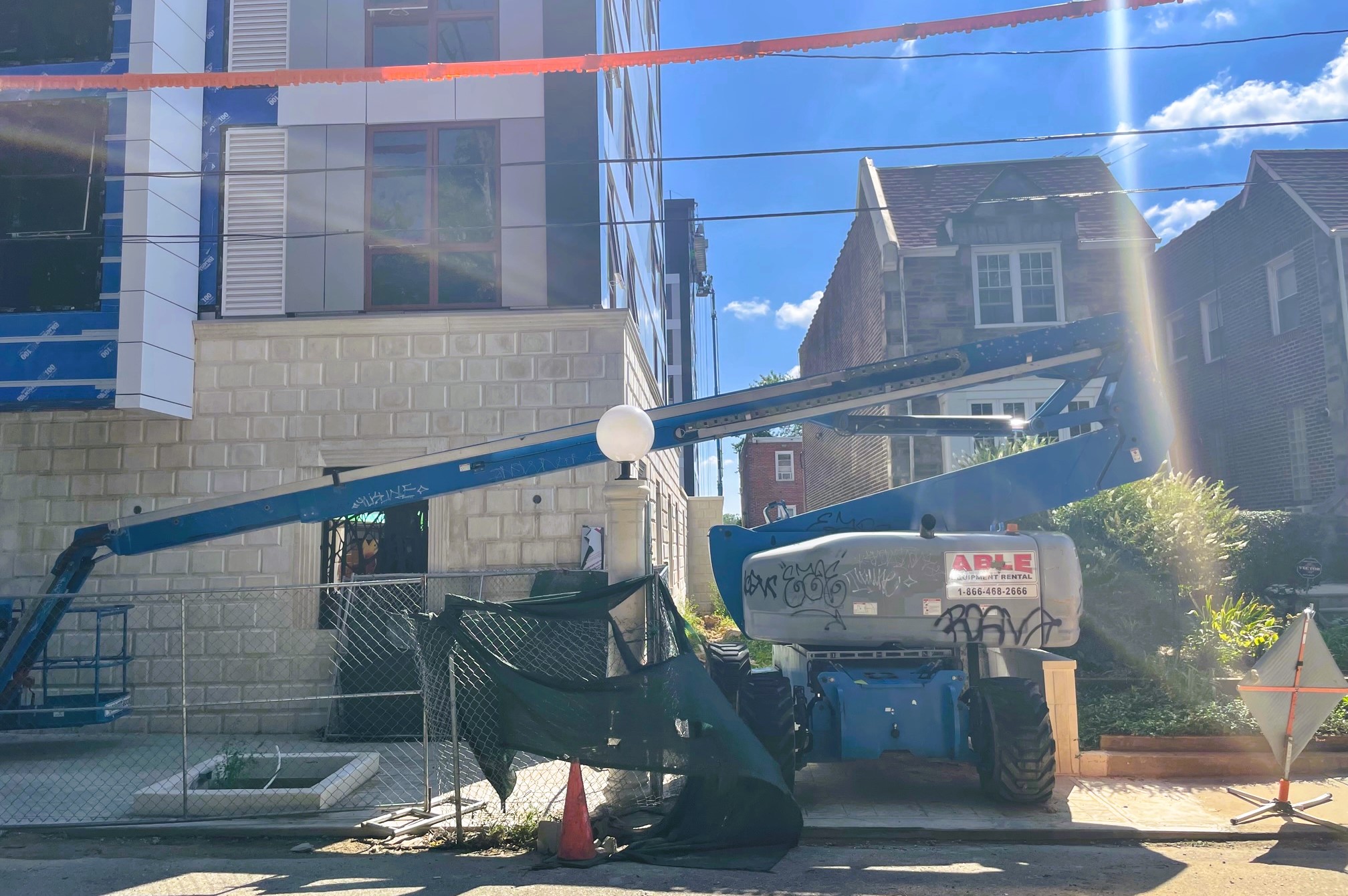 This building pairs a stone material on the first floor with more contemporary looking metal panels, mixing in reds along with the more neutral tones. The vibe of this building is a bit unusual, perhaps due to the juxtaposition between the first floor cladding and the panels above. We applaud developers Hillel Tsarfati and Kfir Binnfeld (who worked with the Orens Brothers on the Croydon project across the street) for going for something new and different on the ground floor, even if it doesn’t quite capture the same feel as the older buildings in the neighborhood. Then again, there’s not much being built these days that does. Be that as it may, this project and its near neighbor collectively illustrate just how development is pushing farther west – 150 units here and 170 units there are a huge deal in an area that hasn’t exactly been the nexus of new construction in a long, long time.