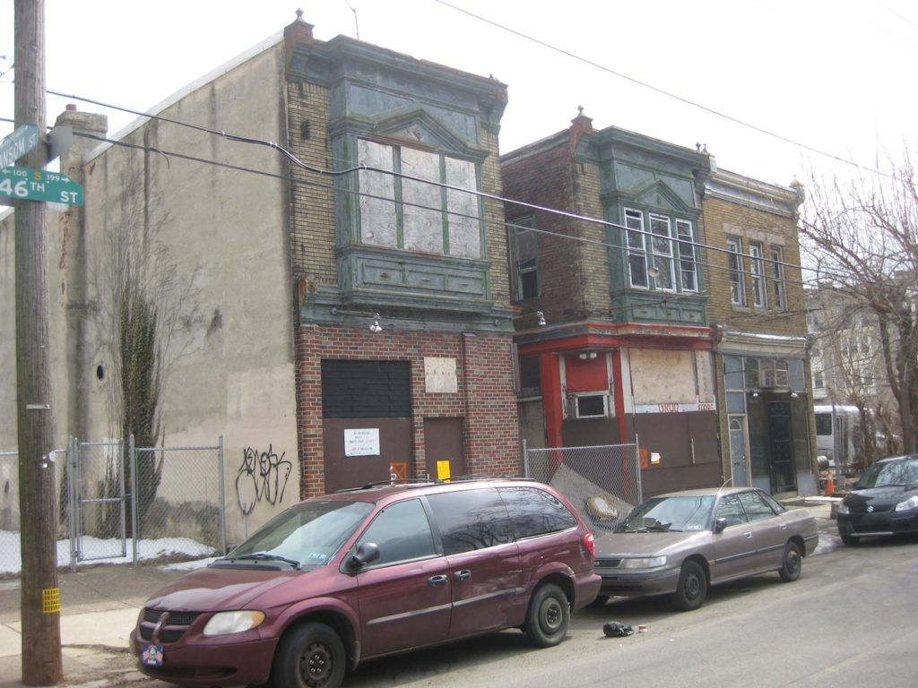 According to public record, the properties pictured above are owned by Sansom Street Development LP. They acquired most of the parcel back in 2004 through an act of the Redevelopment Authority, but they didn't get the property on the corner until 2013. According to some old PRA minutes, the original plan for these lots was to build homes to sell. Somewhere along the line, the plan changed to involve the construction of rental units. Though we can't find the permits online, the PRA minutes indicate that the developer will soon be constructing six buildings, each with 4 two-bedroom apartments. These units will be rented at market rate.