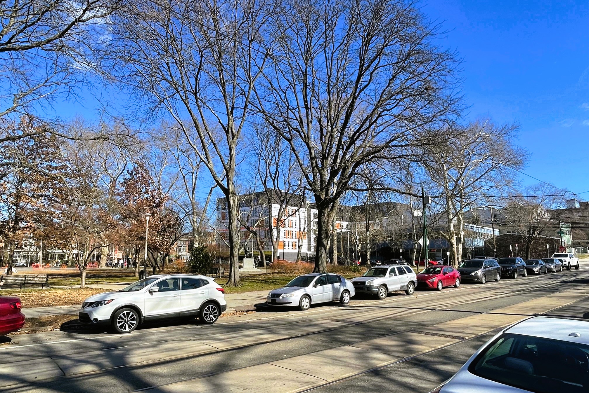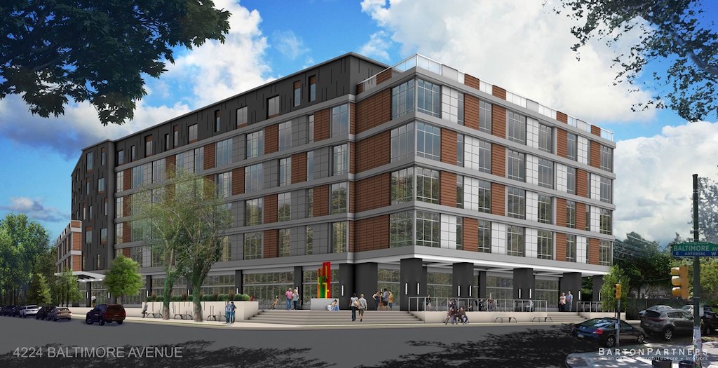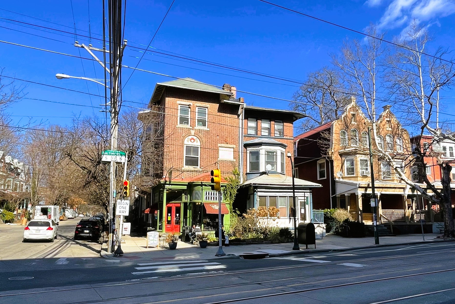 After we meandered along the pathways, we found ourselves at the far northeast corner of the park, where that contemporary facade is up at 4224 Baltimore Ave., which we last visited back in 2021 after over a decade of check-ins. Formerly an empty lot with some older trees, plans for multi-family projects have come and gone for what we would argue is one of the prettiest darn corners in the city. Don’t believe us? See for yourself.