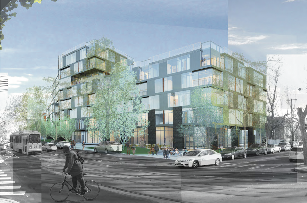 We are loving the density, scale, and programming here, but we are wishing that the design was perhaps a bit less contemporary. With all of the historic architecture close by, a recreation of traditional tropes would likely fall short; however, just continuing the brick up the entire facade would give this a modern look while fitting in a little better. We understand the cost concerns, but all that paneling takes away from what is a very slick massing, in our opinion.