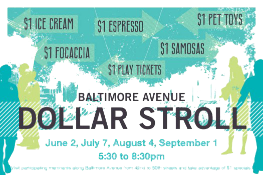 The press release isn’t out just yet, but we have a bit of an early scoop on this year’s Dollar Stroll in University City, which happens every first Thursday this summer. From 5:30 to 8:30pm Baltimore Avenue between 42nd to 50th Streets will be packed with vendors selling everything for (wait for it) $1. This year’s vendors of $1 items include beverages and baked goods from the new Mariposa Co-op; Bassetts ice cream from the Milk & Honey Market; fresh-squeezed juices and mango lassis from Mood Cafe; brownies and mini sandwiches from The Gold Standard Cafe; focaccia and logo ping glasses from Dock Street Brewery; PBR from Elena’s Soul Showcase, Lounge & Cafe; espresso and vegan cupcakes from Green Line Cafe, samosas from Desi Village and Desi Chaat House; and cat and dog treats from Baltimore Pet Shoppe. There will also be $1 deals from Jimmies Cupcake Co. and Maru Global Takoyai.