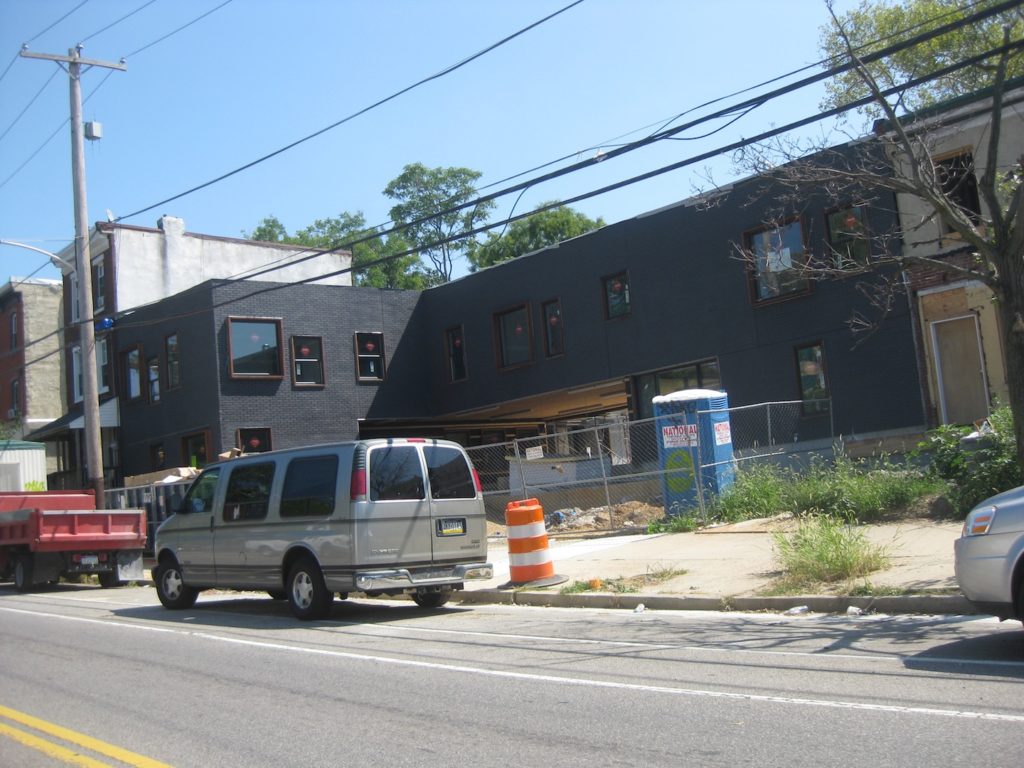 Last summer, the middle of the 4200 block of Powelton Ave. was a big vacant lot where a blighted building had been demolished. A year later, we observed an interesting looking project called Bigham Place, the exterior of which was nearly completed. When it's finished, Bigham Place will serve formerly homeless women with special needs and their children.