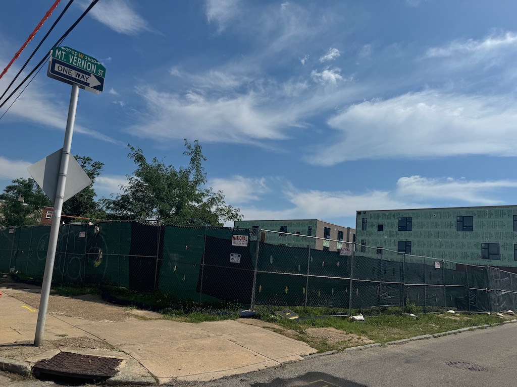 But if you look to the 3600 block of Mount Vernon, you’ll see that something is indeed happening. Two new buildings are up, with one fronting Mount Vernon and the other fronting Wallace Street.