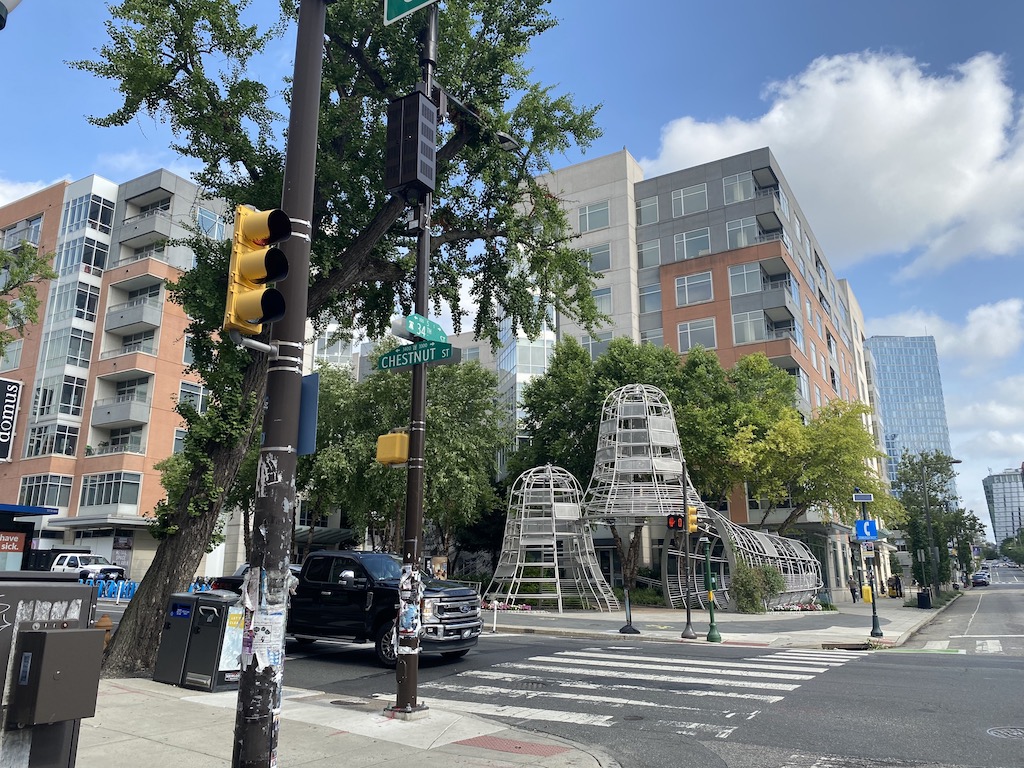 Here’s a little history, since this property obviously wasn’t always used for parking. There once was a collection of apartment buildings on this site, and we believe Penn acquired all of them in the 1960s or 1970s via eminent domain, in the middle of a dramatic (and problematic) expansion of the university’s land holdings. By the late 1970s, the buildings on the site were razed and a large surface parking lot took their place. In 1988, Penn built the parking garage we see today, but for whatever reason the design decision was made to set it way back from Chestnut Street, leaving the leftover section of surface parking lot that’s still in active use. But that’s not going to be the case for much longer.