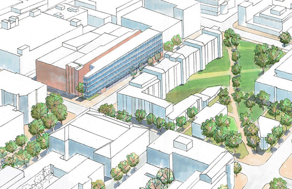 It’s tough to figure out exactly what the new building will look like from the rendering above, but it seems like a safe bet that it will take a decidedly contemporary approach. This would be a departure from most of the buildings on Penn’s campus, and also from projects that have appeared at this intersection of late, like the circa-2008 Domus Apartments on the northwest corner and the still newish New College House (now known as Lauder) on the southeast corner. Though the building is still a ways away and doesn’t even have an estimated date of completion (or a starting date for that matter), it’s a sure thing that it will happen, given that the university has already received a gift which will cover about a third of the project cost. And when it finally does move forward, you certainly won’t see us shedding any tears at the loss of another surface parking lot. Honestly, we don’t care if they just use the building to store old ENIAC punch cards, it’ll still be a welcome upgrade.