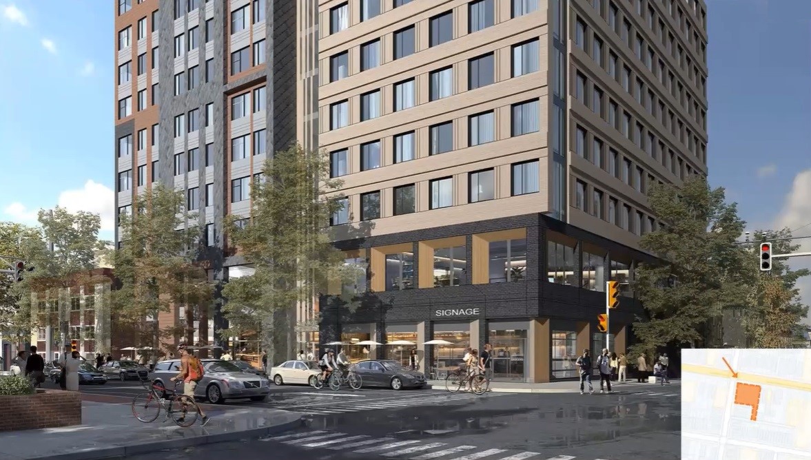 When we last checked in on the southeast corner of 41st & Walnut, we told you that Campus Apartments was planning to demolish a low-rise apartment building and a former fraternity house, intending to combine them with a small surface parking lot to build an 11-story, 135 unit building with ground floor retail and a floor of offices. While we were sad to learn that these buildings would be torn down, we understood the appeal of building such a project at this location. This stretch of Walnut Street has seen a good amount of new construction recently, including at the former McDonald’s at 40th and Walnut, 3901 Walnut Street, and multiple projects nearby on Chestnut Street.