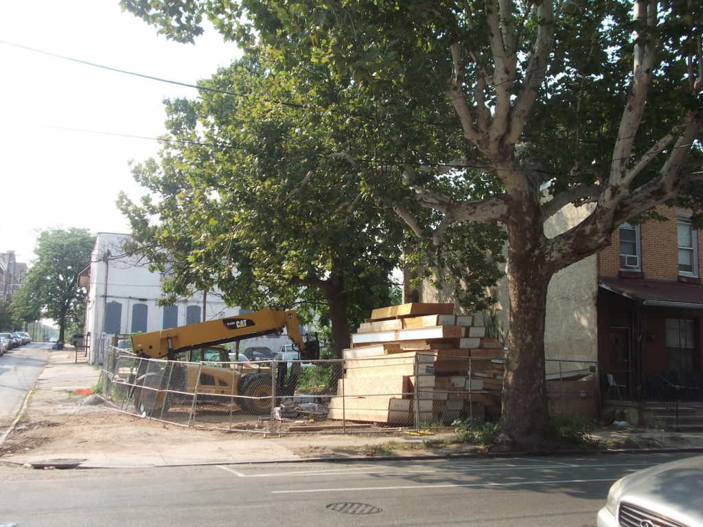 This lot is on an intersection that is flanked by vacant lots, one of which is being used as a storage space for construction equipment for the current project. After checking the City's Office of Property Assessment, we learned that that property is owned by the Redevelopment Authority. In fact, several of the vacant lots nearby seem to be owned by the Redevelopment Authority.